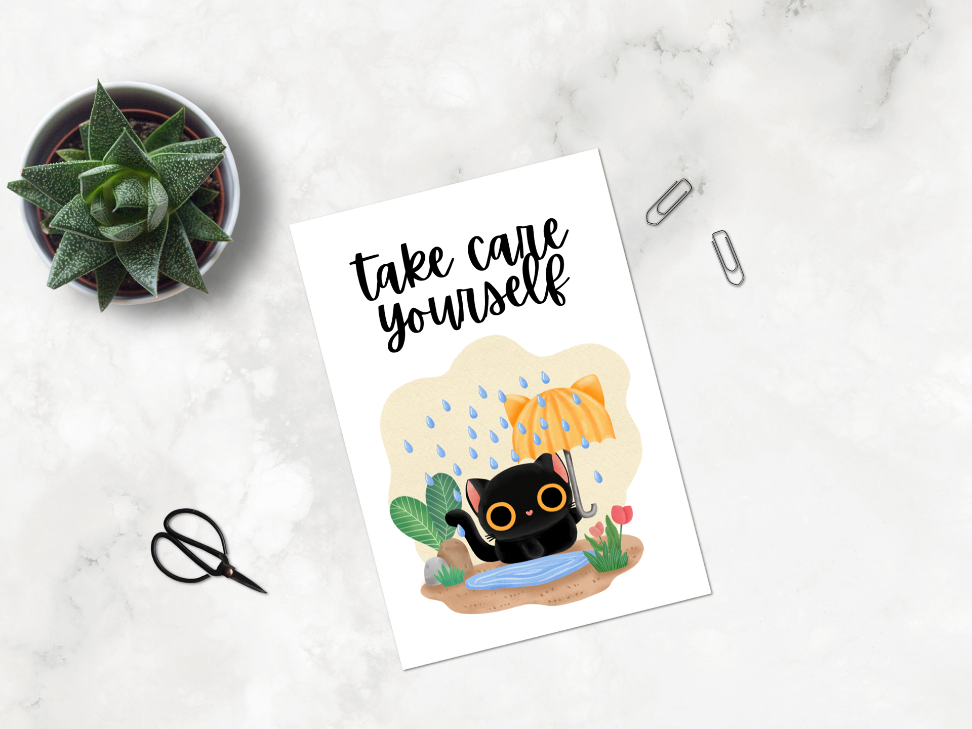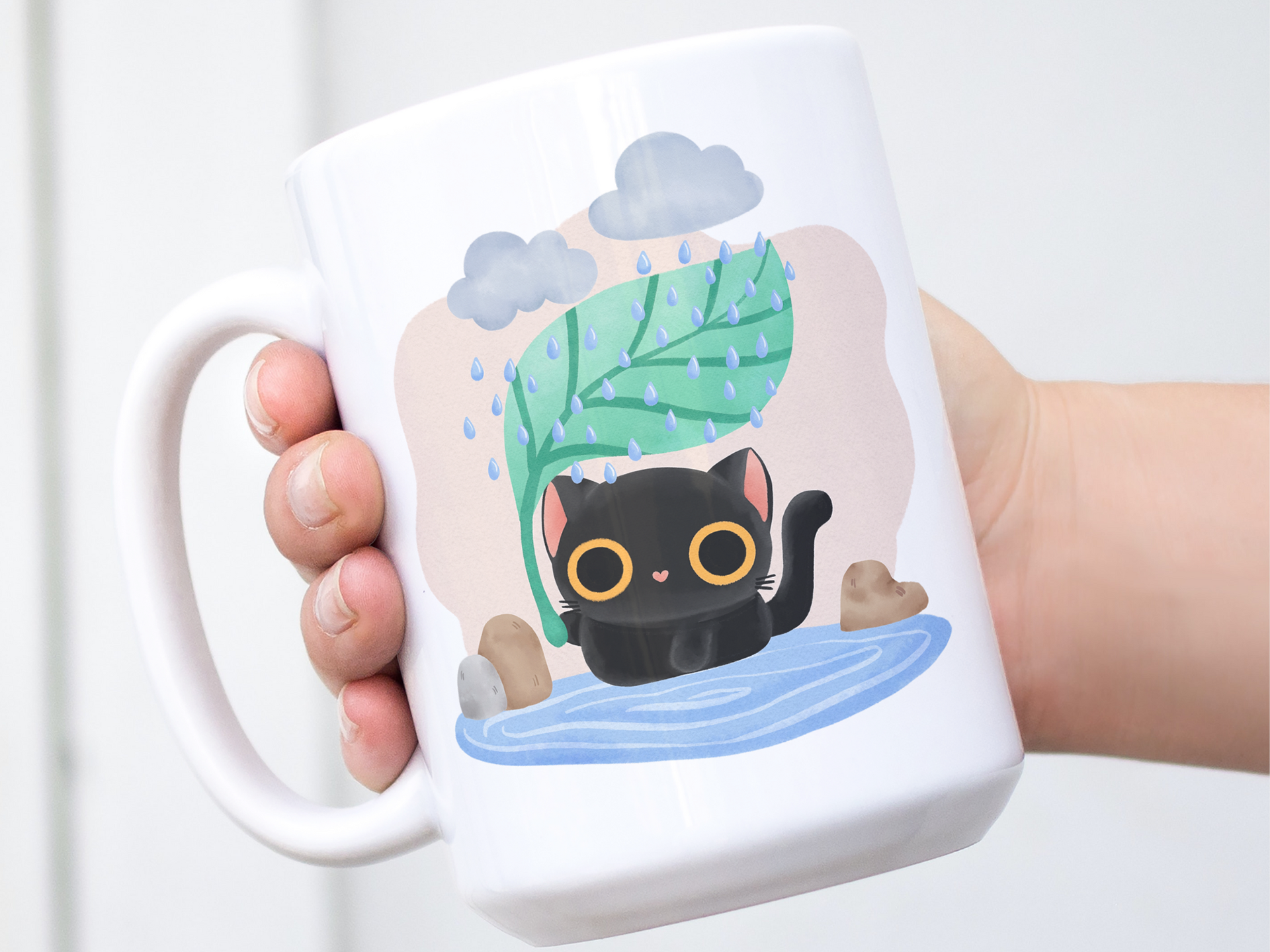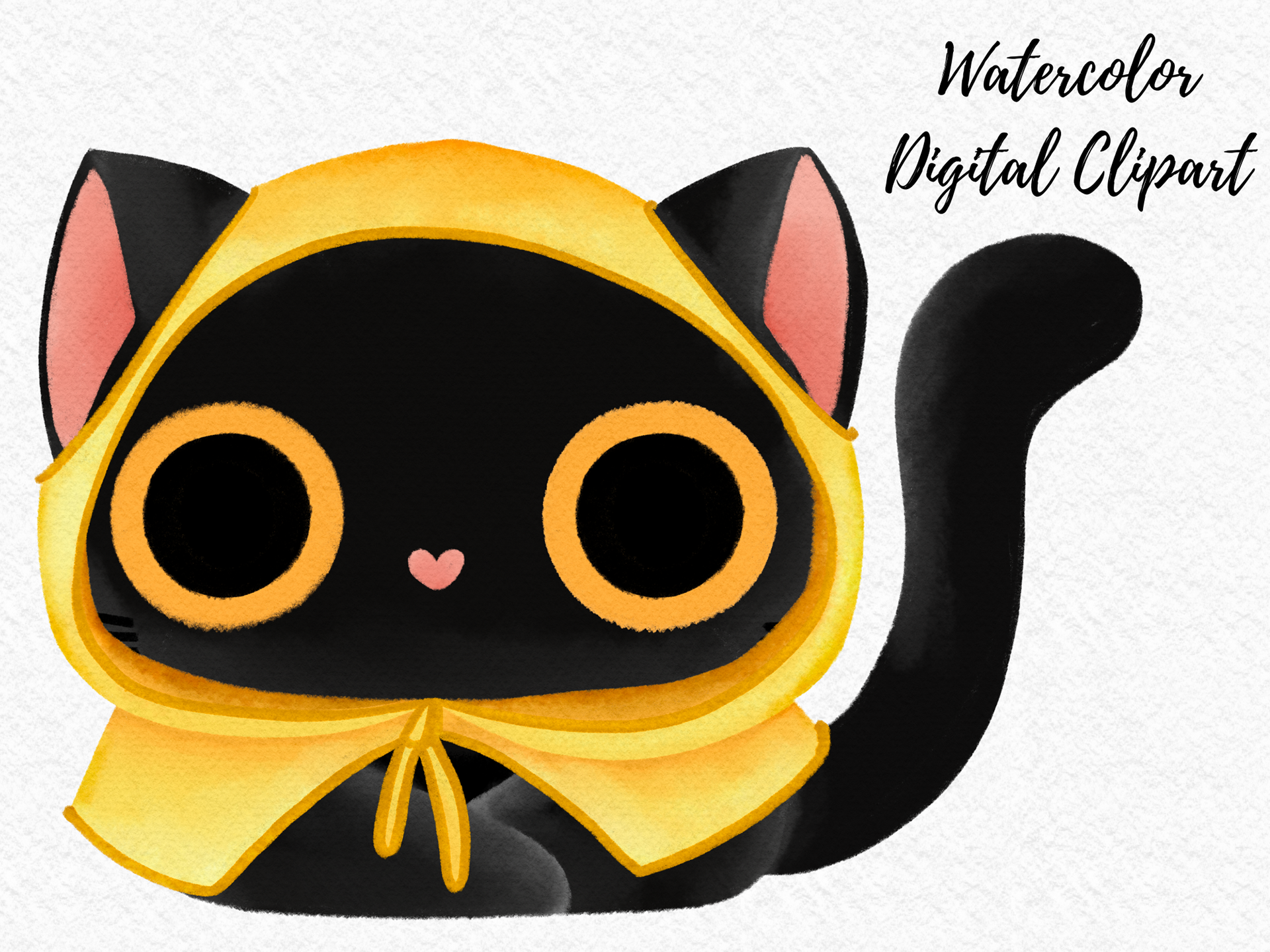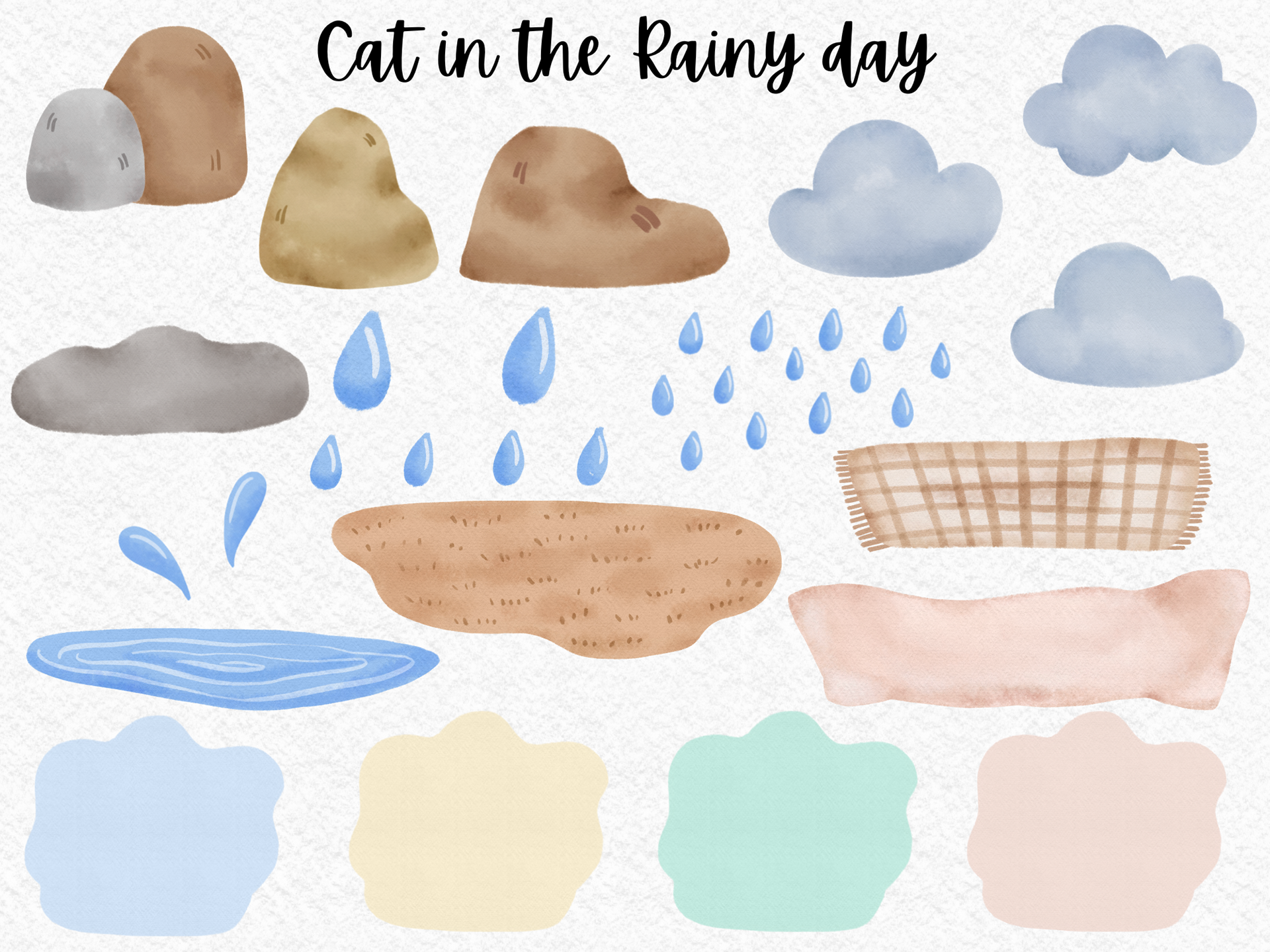 Cat in the Rainy day watercolor clipart PNG cute black cat rain weather cold take care character season change card warm ing house digital download