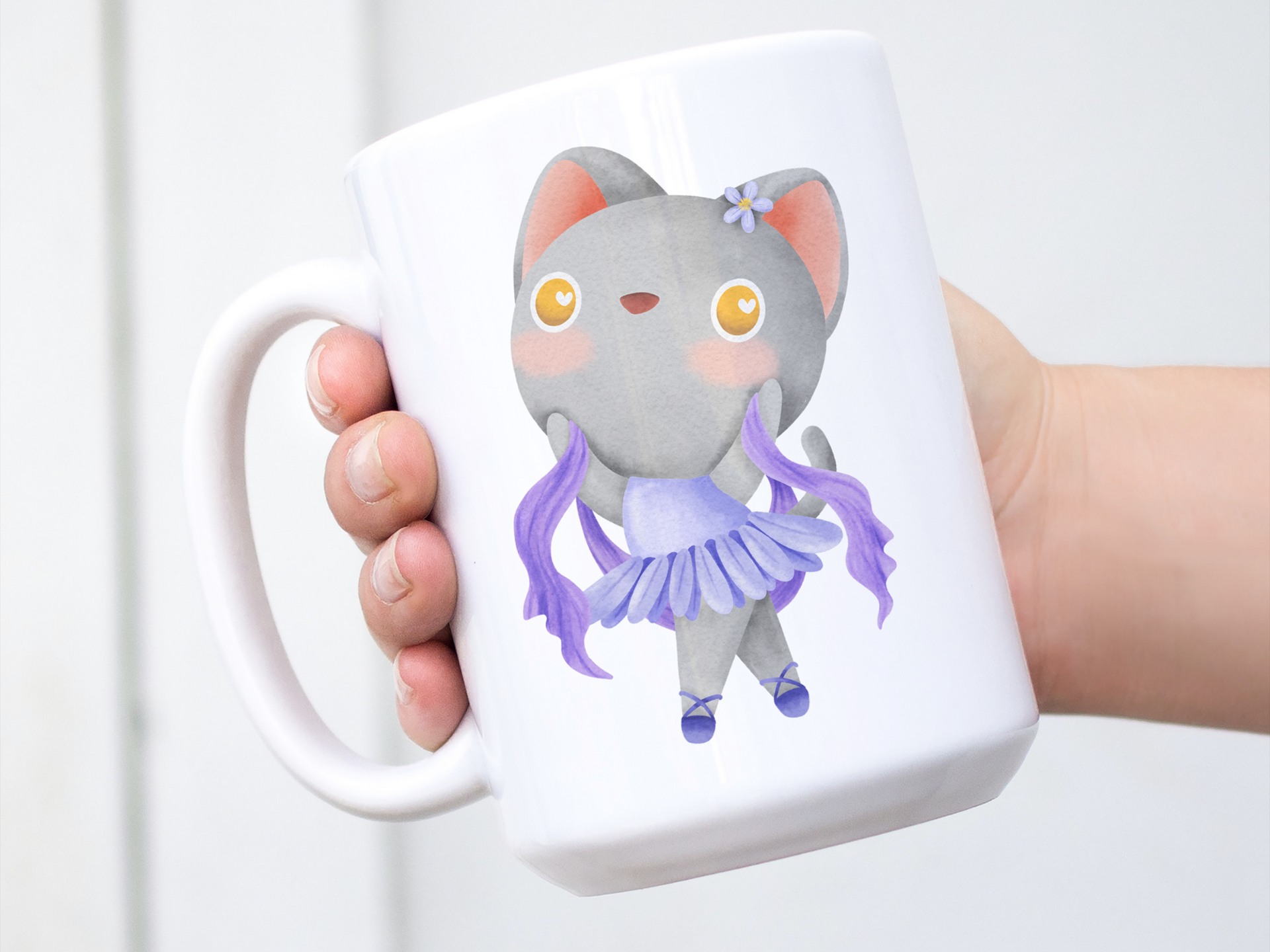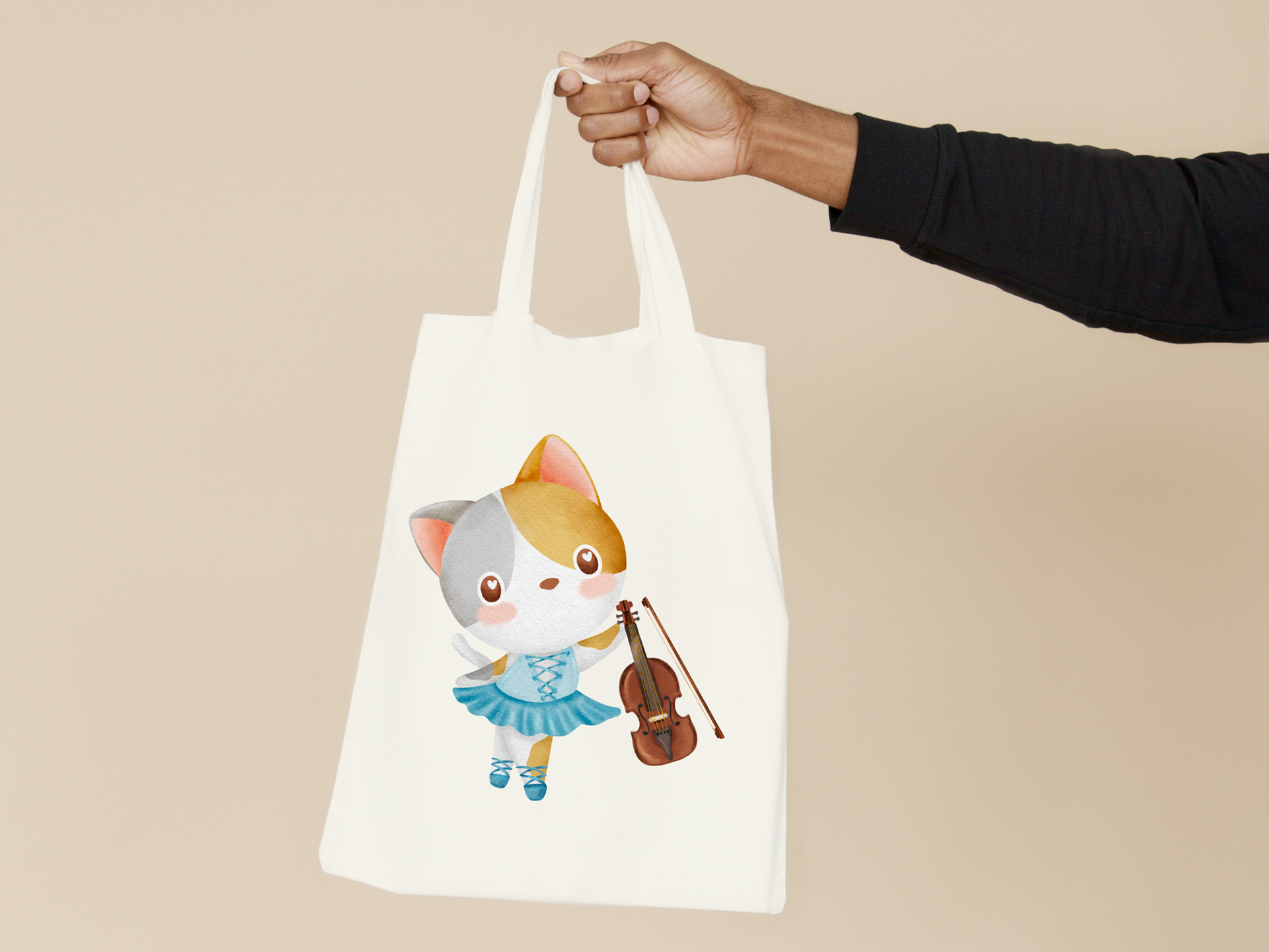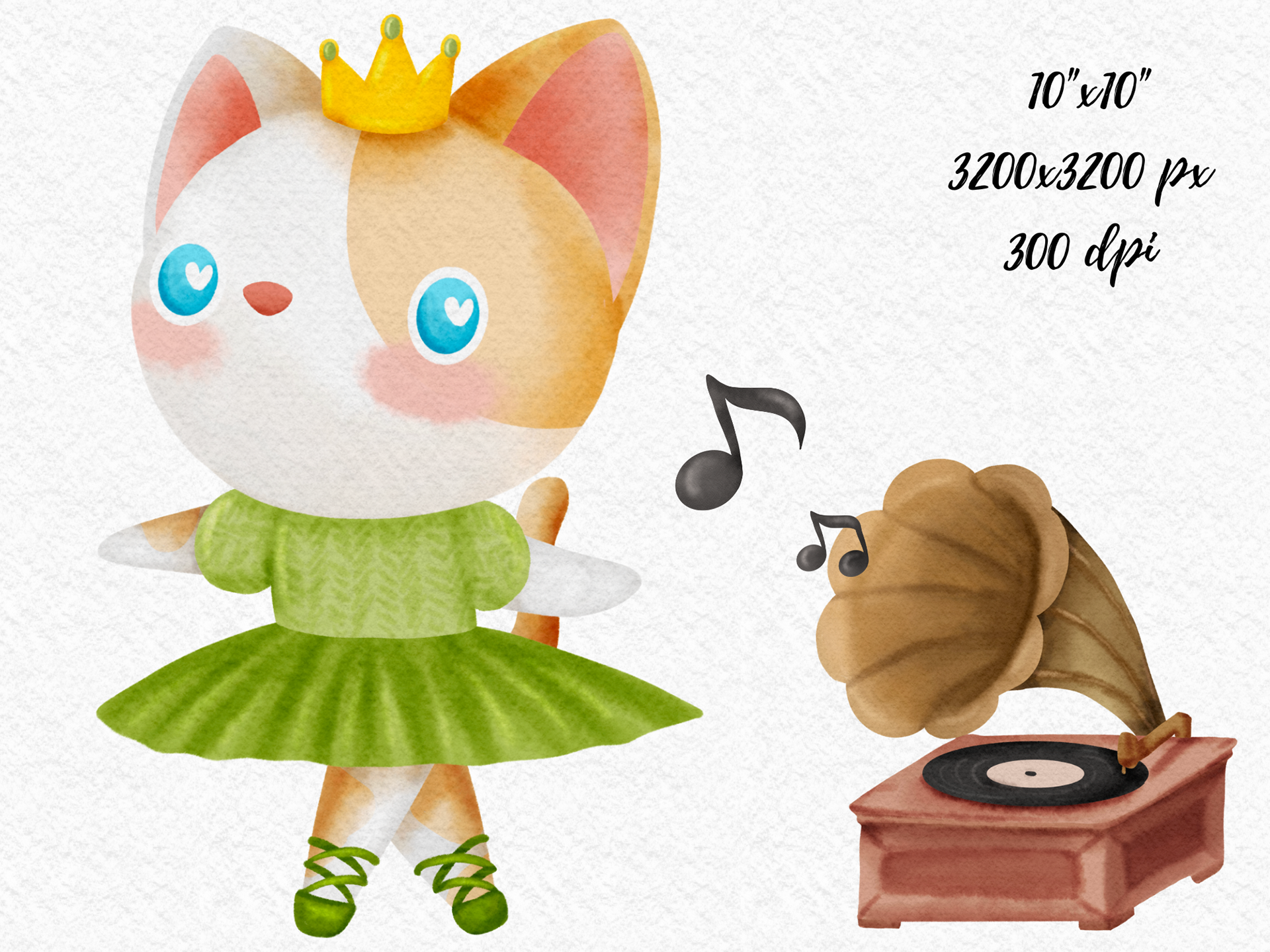 Cute Ballet Cat watercolor clipart PNG colorful cute kawaii kitten nursery kid animal girl baby shower birthday card princess music violin dance dress music player
