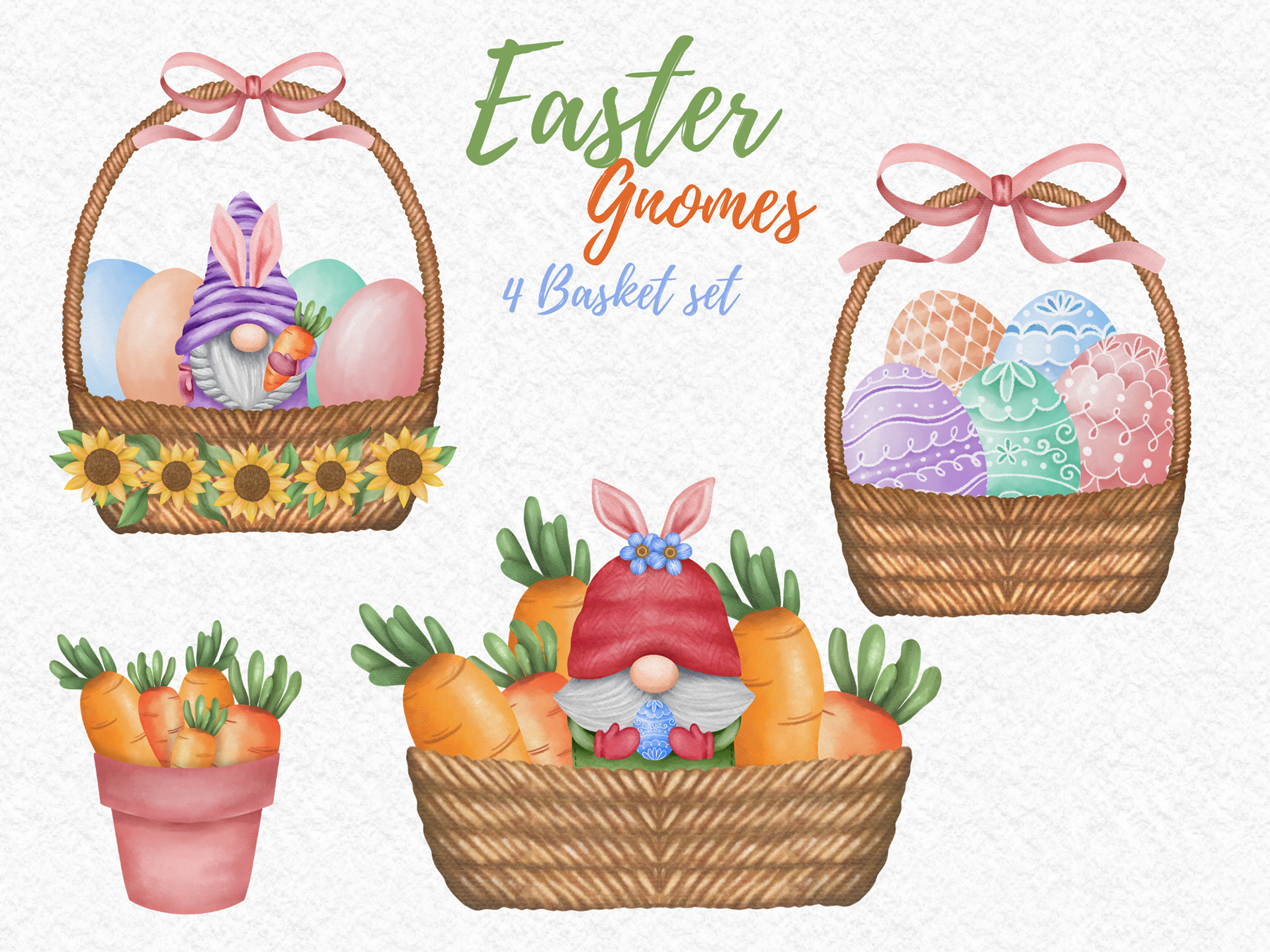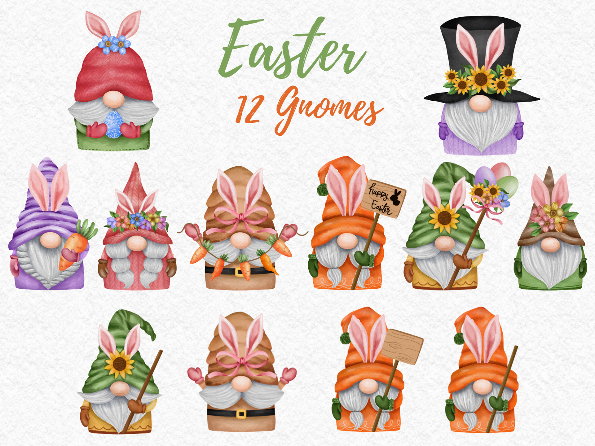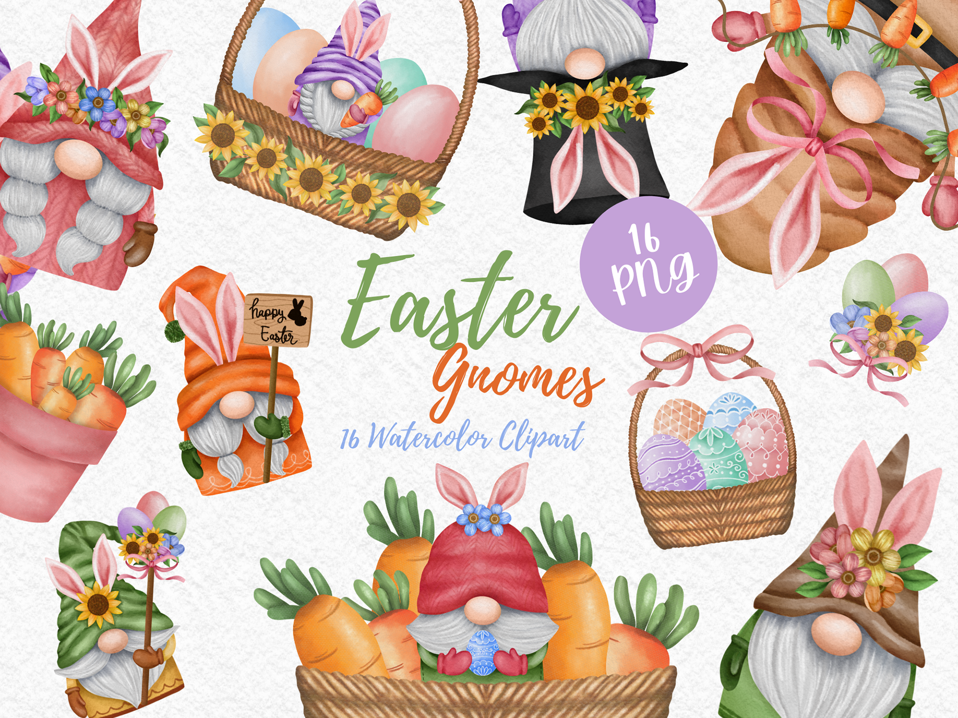 Easter Gnomes Watercolor clipart. Digital download detail in picture below