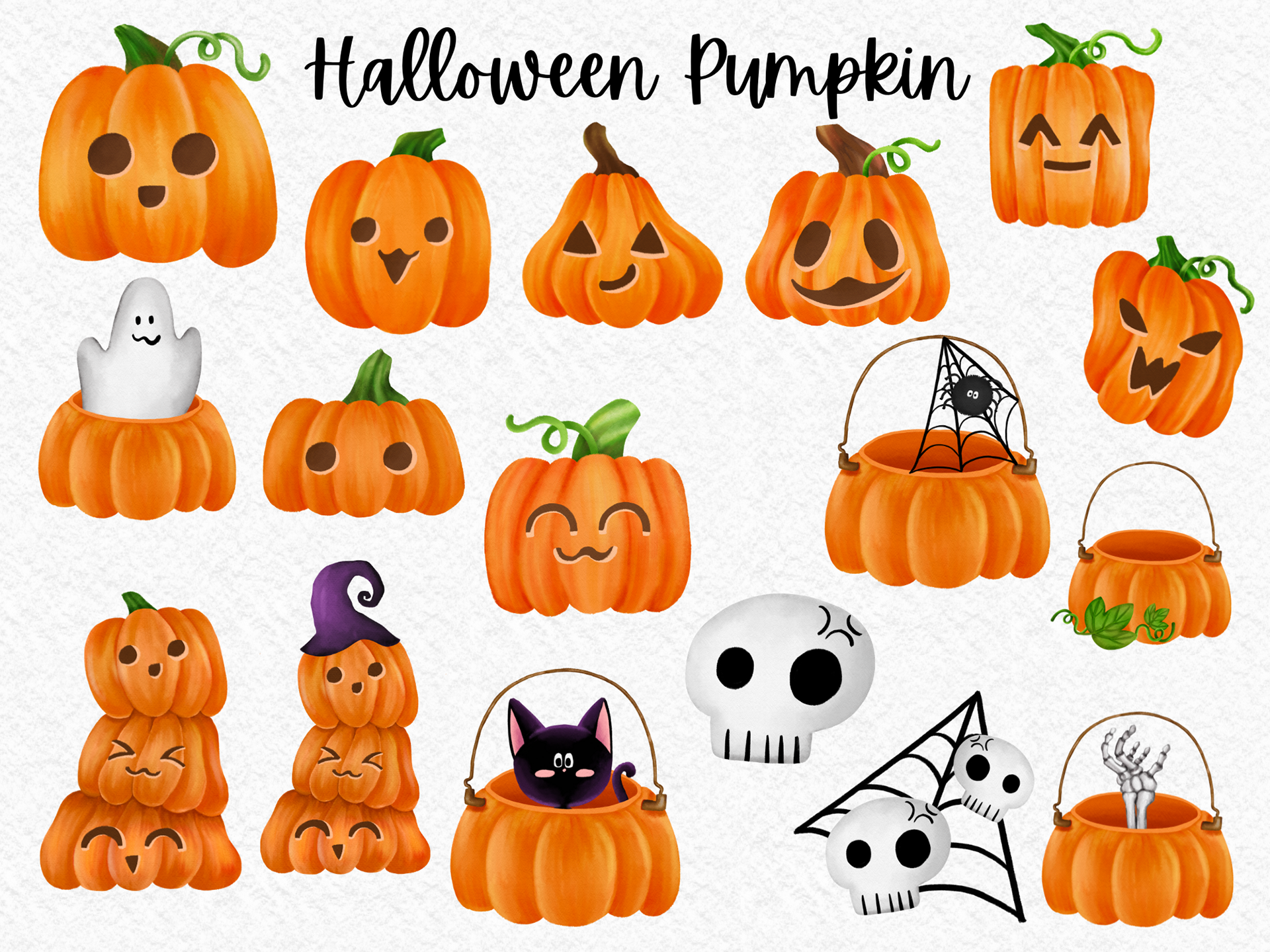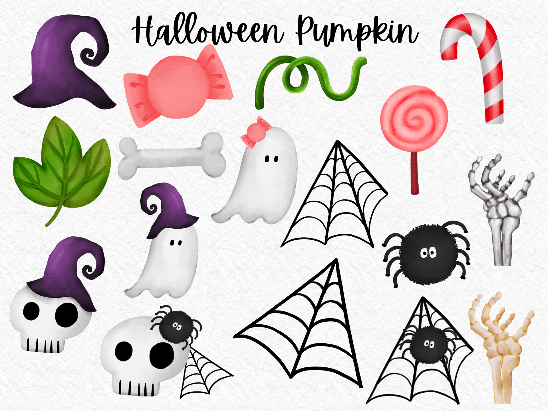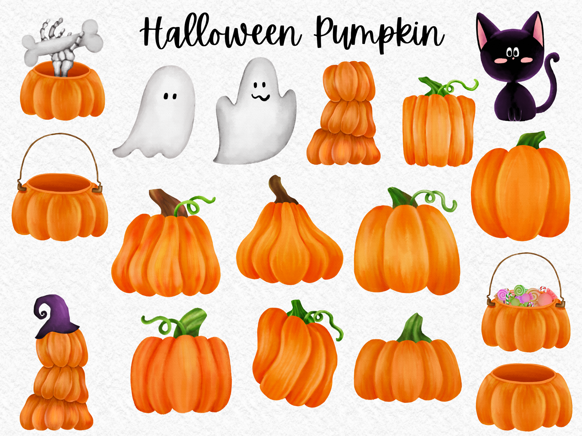 Halloween Pumpkin watercolor clipart Halloween elements, Ghost pot cat holiday thanksgiving Boo PNG circuit sublimation digital download