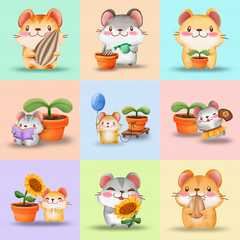 Story about the 9 Hamster Niko,Leo,Lana,Oki,Max,Bubble,Elle,Lucy and Gus growing sunflower from seed. They're try to take care the sprout like a reading a book, cheer up dance, take a walk until the sunflower grow up for eat ^^