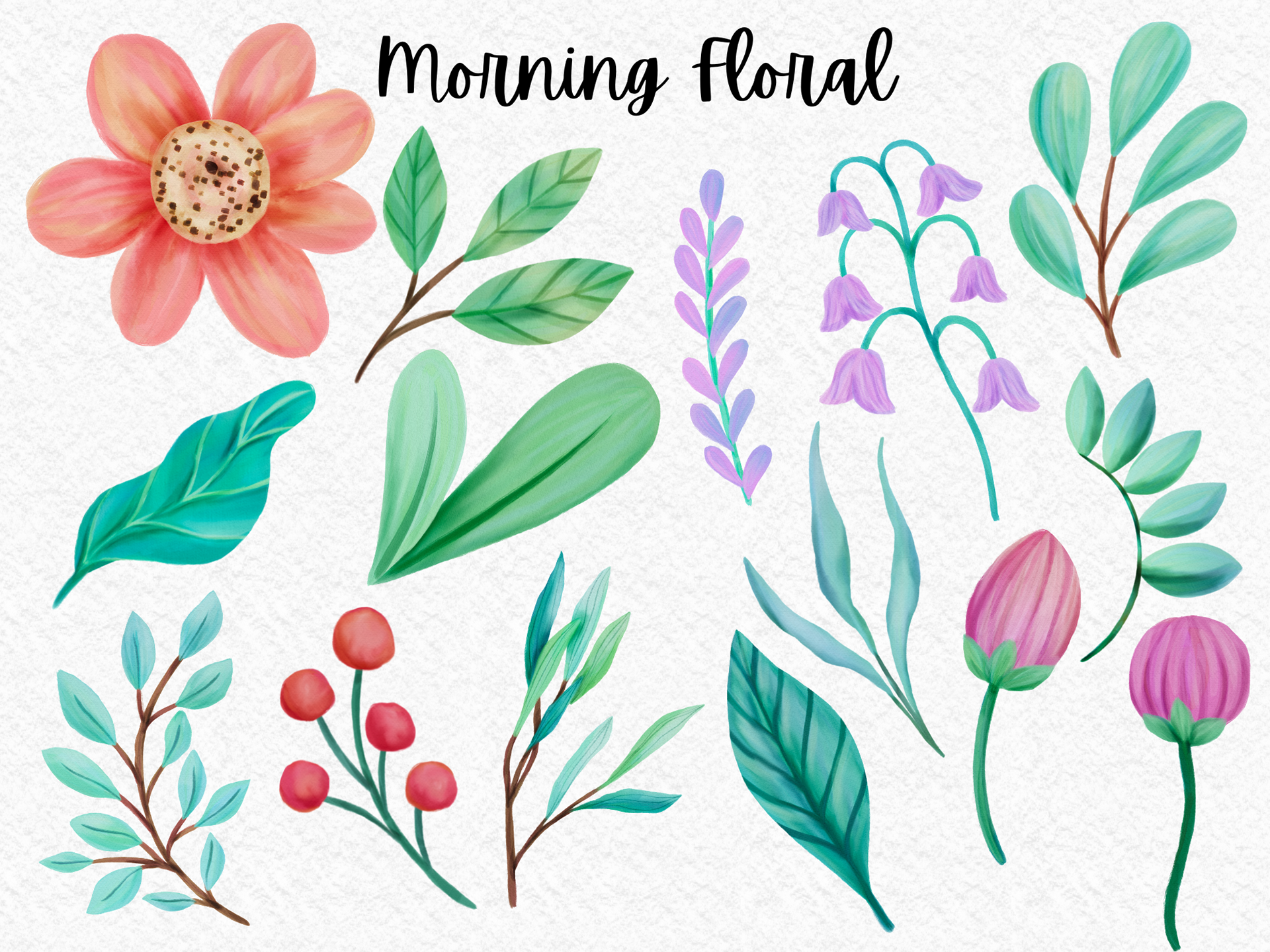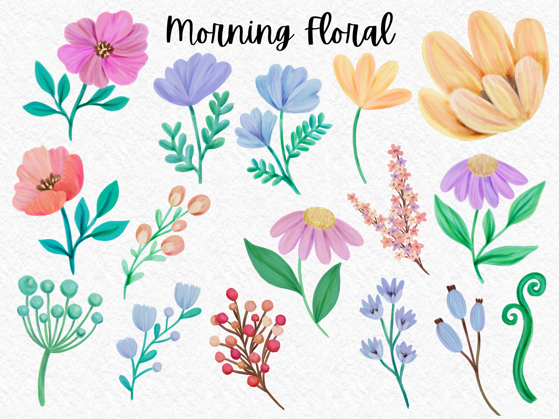 Morning Floral watercolor clipart pastel flower Collection digital download wedding invitation botanical flower floral png printable circuit sublimation