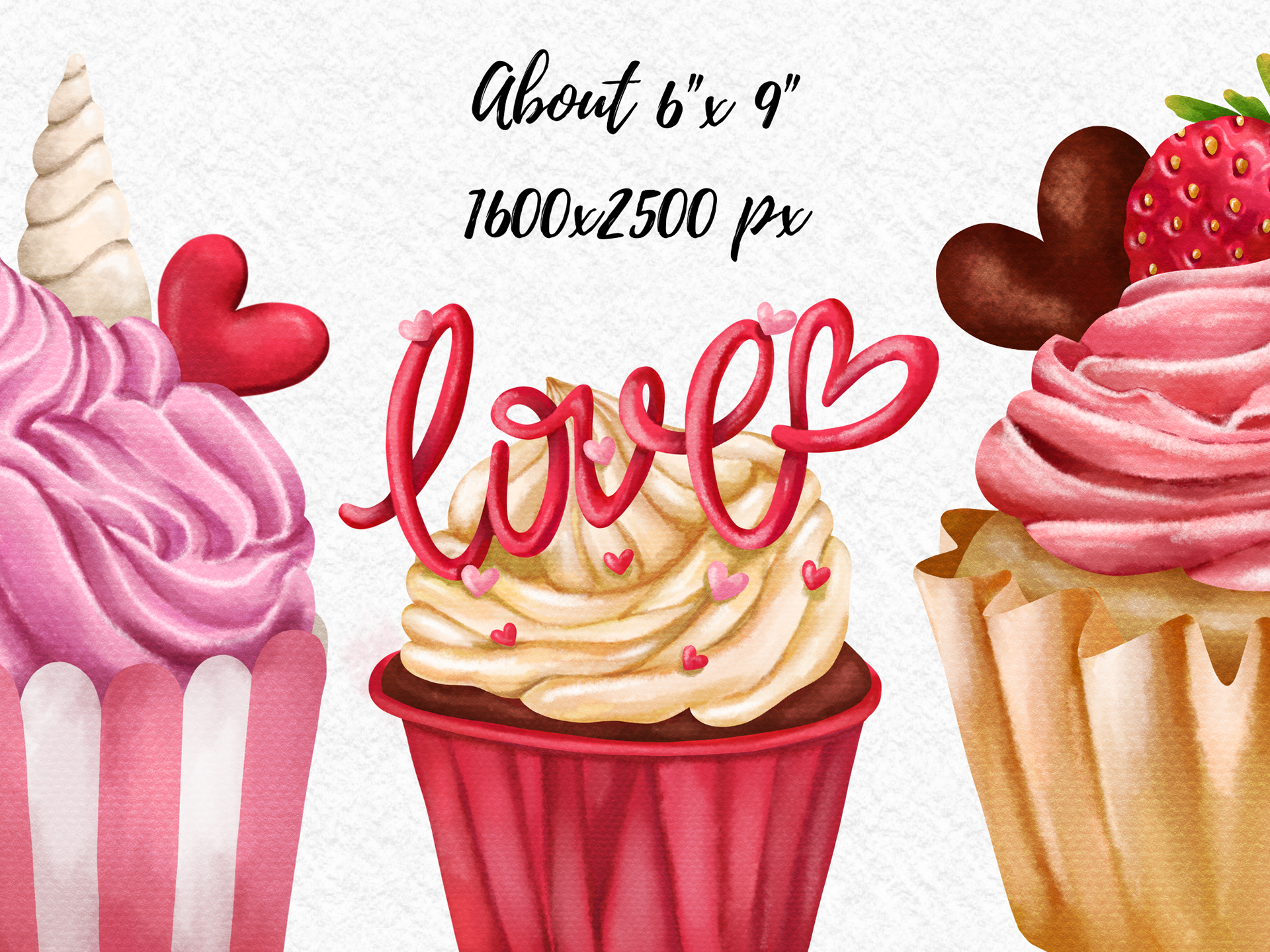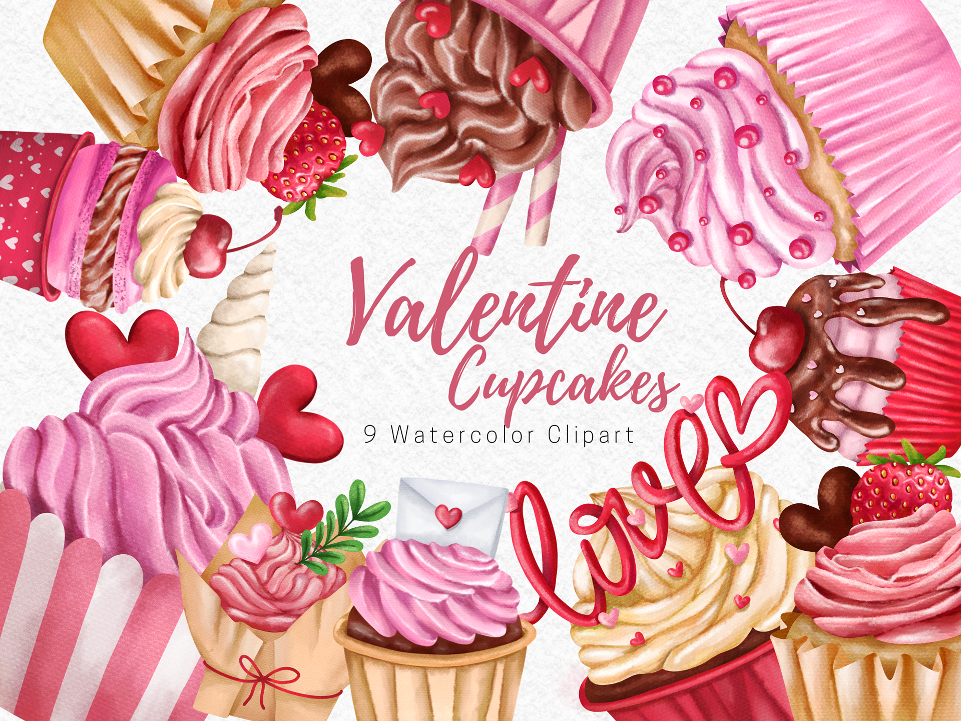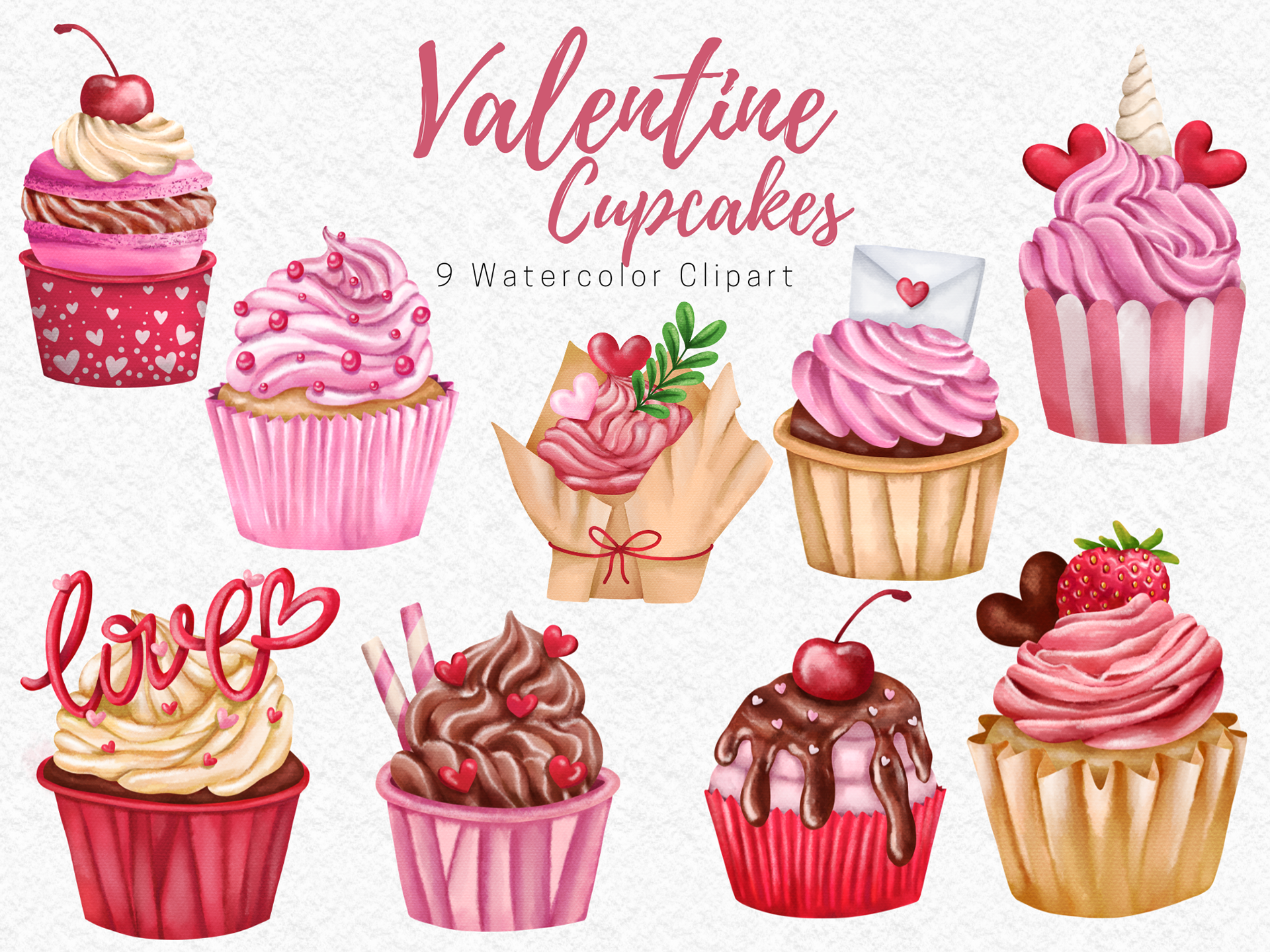 Direct to project 9 Valentine Cupcakes watercolor clipart